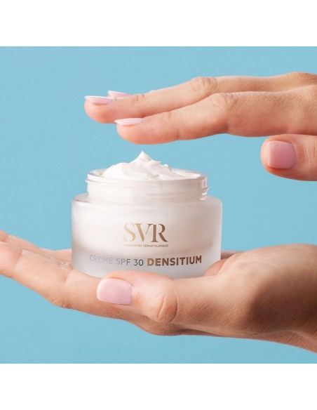 Densitium Creme SPF 30 ofrece una acción antiedad total con protección solar frente a los rayos UVB, UVA, IR y la luz visible (azul) responsables del fotoenvejecimiento y las manchas.