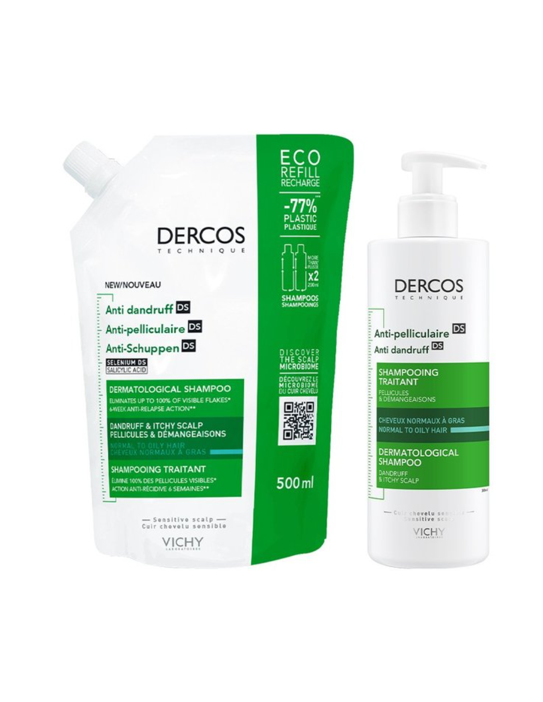DERCOS TECHNIQUE CHAMPU ANTICASPA NORMAL A GRASO 200 ML + REFILL 500 ML