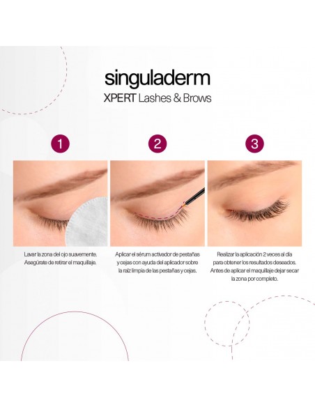 Aplicar con cuidado en la base de las pestañas y en las cejas. Importante que el área esté limpia y seca. Después de aplicarlo, dejar secar. Para mejores resultados aplique dos veces al día, mañana y noche.