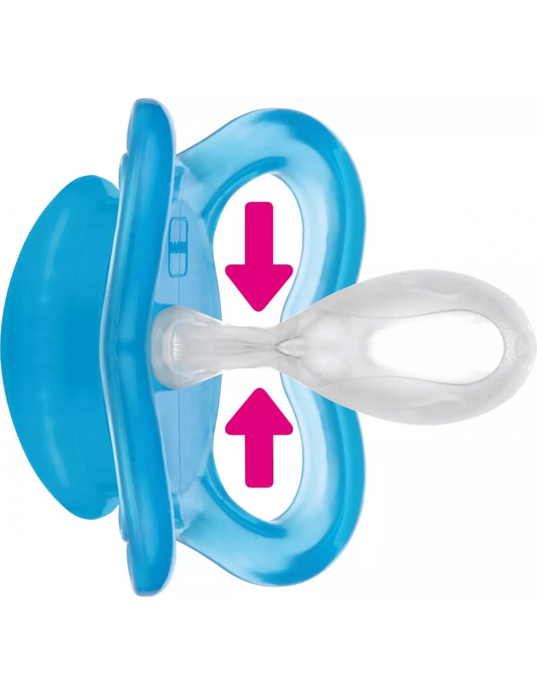 Su tetina exclusiva es un 60 % más fina y 4 veces más flexible que las tetinas de chupetes comparables.