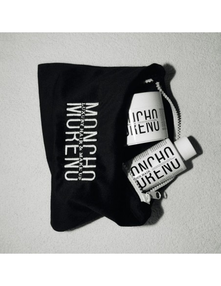 El pack perfecto para lucir pelazo con los básicos de Moncho Moreno en formato viaje: mini champú Gorgeous (inteligente, nutritivo e hidratante), mini mascarilla One Minute Wonder (perfecta para mejorar el aspecto y la salud de tu pelo incluso cuando no tienes mucho tiempo). Todo en un maravilloso neceser en color negro, con logo bordado a contraste.