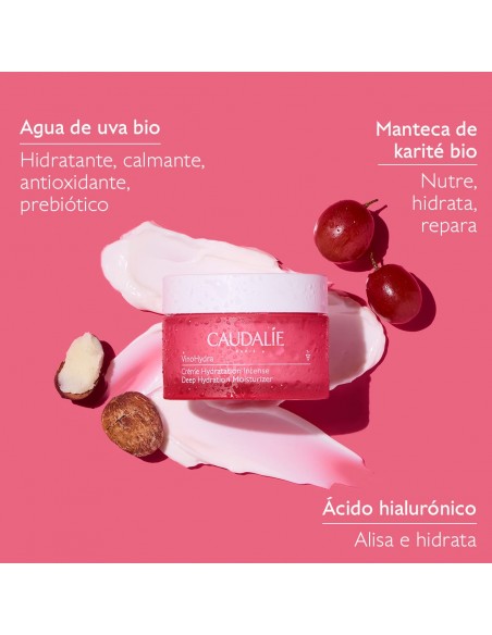Crema a base de ácido hialurónico, manteca de karité ecológica y agua de uva bio. Nutre e hidrata la piel de manera intensa, reduciendo la sensación de tirantez y las rojeces y aportando comodidad a la piel durante todo el día.