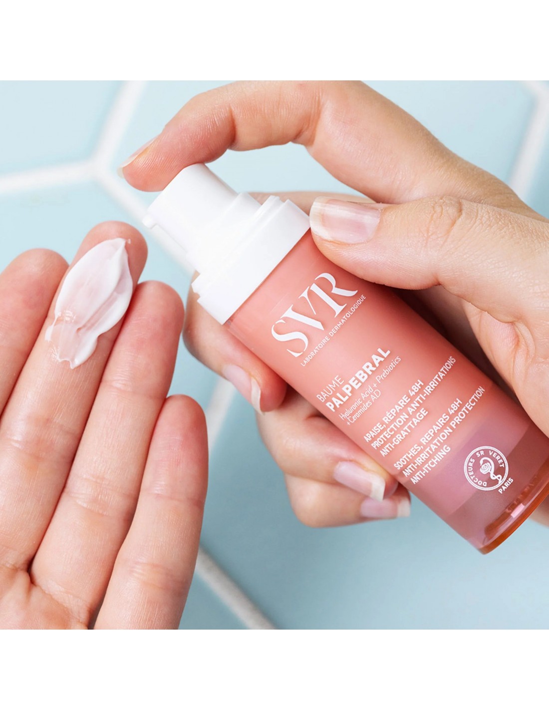 Especialmente formulado para áreas delicadas de la cara y alrededor de los ojos, Baume PALPEBRAL hidrata y restaura la barrera de la piel y manto ácido para calmar instantáneamente y reducir de forma duradera las molestias (irritación, enrojecimiento, picores y sequedad) durante 24H. Enriquecido con ácido hialurónico y omega 3, 6 y 9 combinado con Ceramidas AD patentadas que protegen de los agresores externos (ácaros y contaminación) y ayudan a reparar la piel.