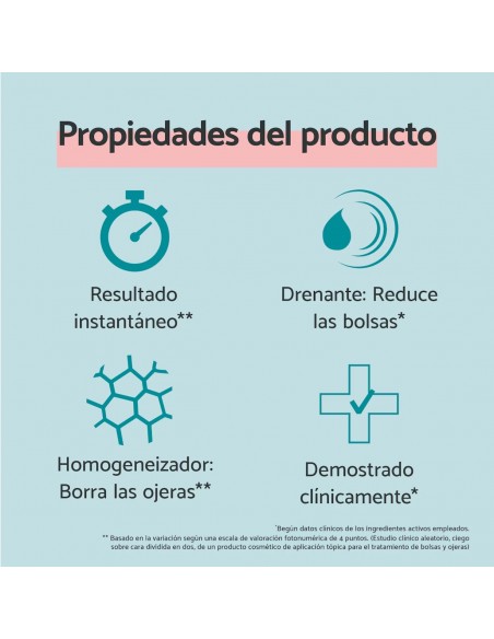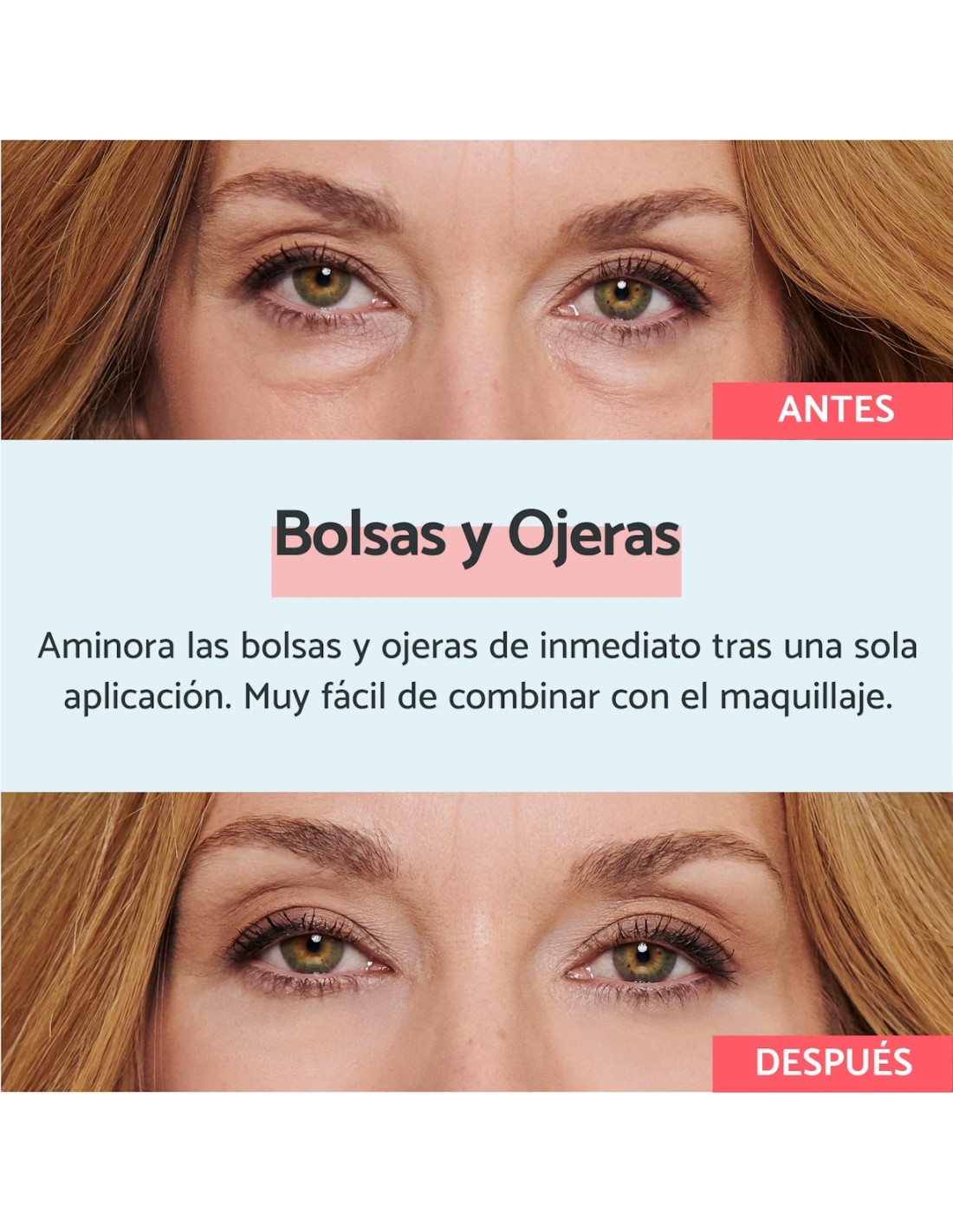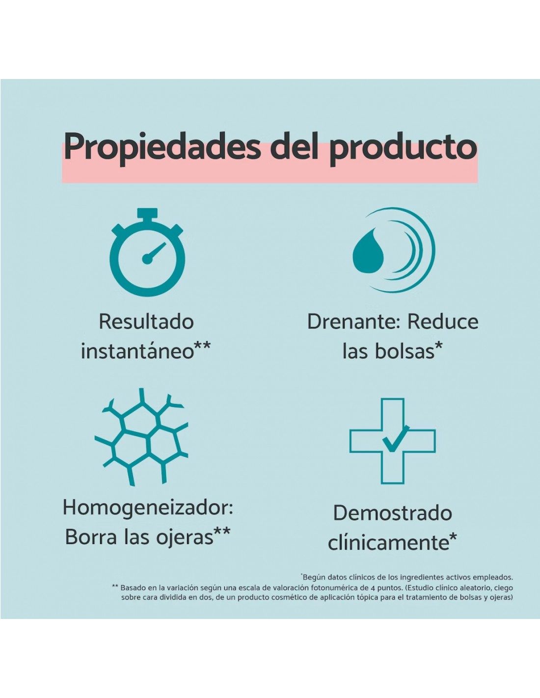 El efecto inmediato en ojeras y bolsas bajo los ojos se debe a la exclusiva tecnología EYE-TENSE© que se basa en tres acciones: