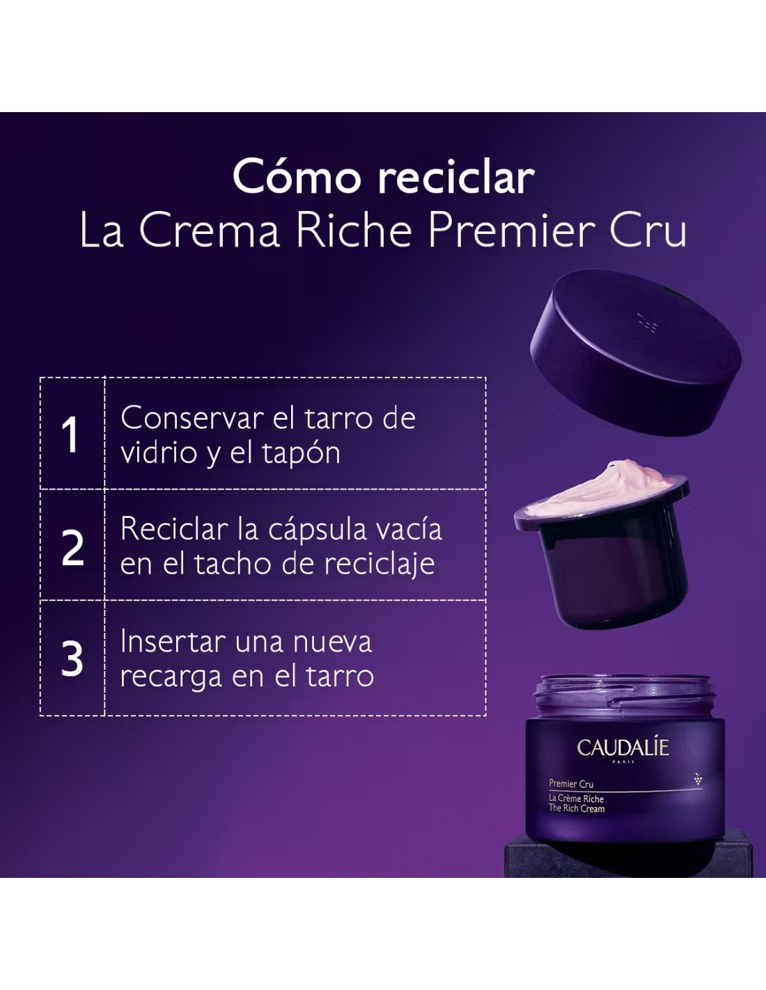 Recarga de la Crema Premier Cru Rica, tratamiento que combate los 8 signos de la edad: arrugas, líneas de expresión, volumen, manchas, hidratación, luminosidad, firmeza, elasticidad.