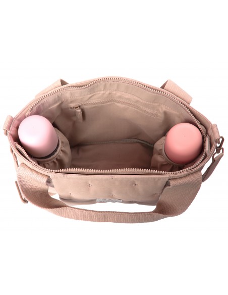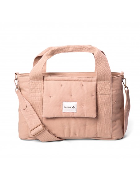 Con asa larga, dos asas pequeñas y dos cintas para colgar del carrito.