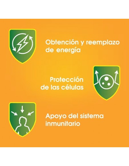 - 13 vitaminas y 9 minerales esenciales para el organismo y Coenzima Q10