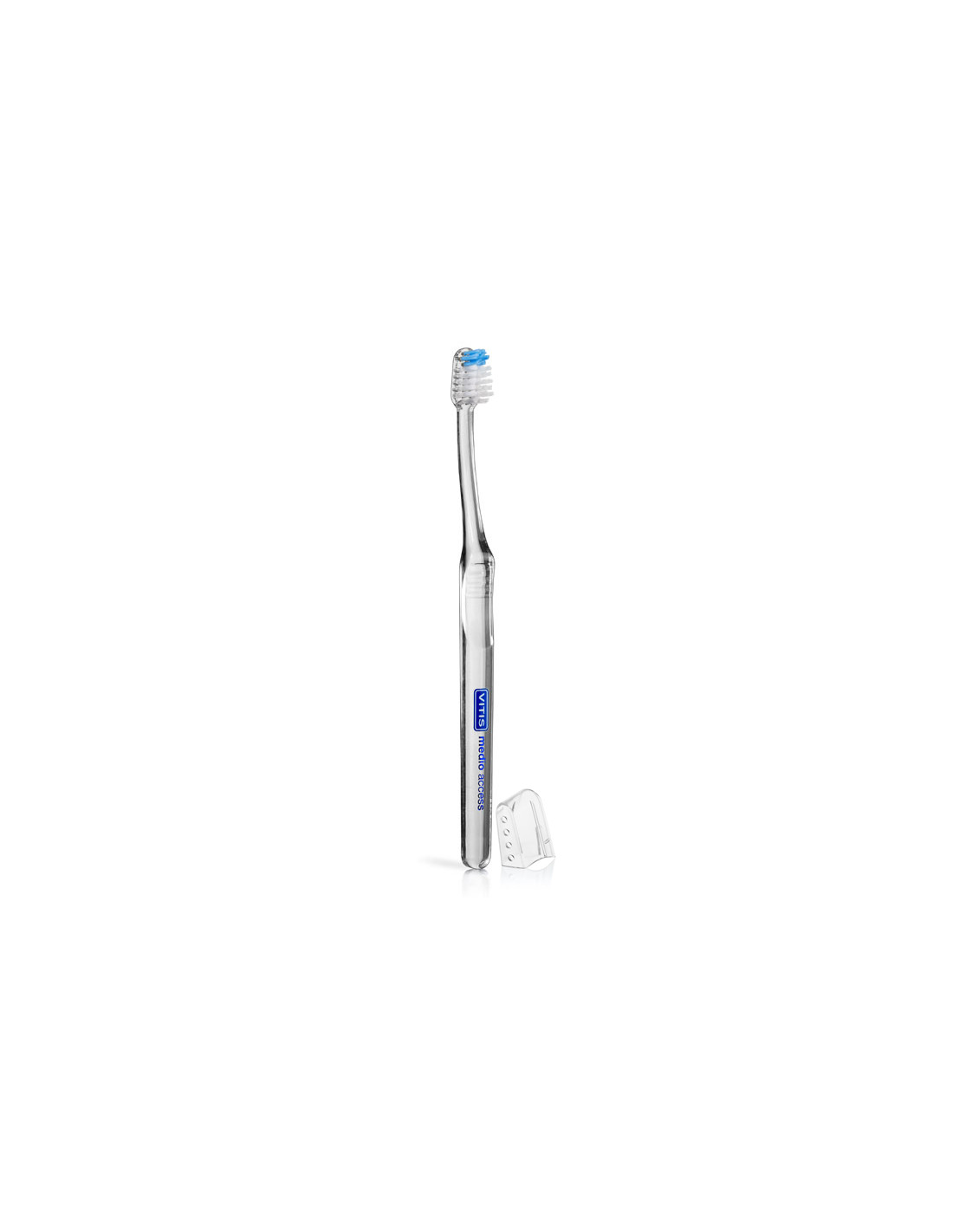 Cepillo de uso diario. Cabezal pequeño que permite acceder a las zonas de difícil acceso (zonas posteriores de la boca, especialmente piezas que se encuentran en proceso eruptivo, malposición dentaria, etc.).